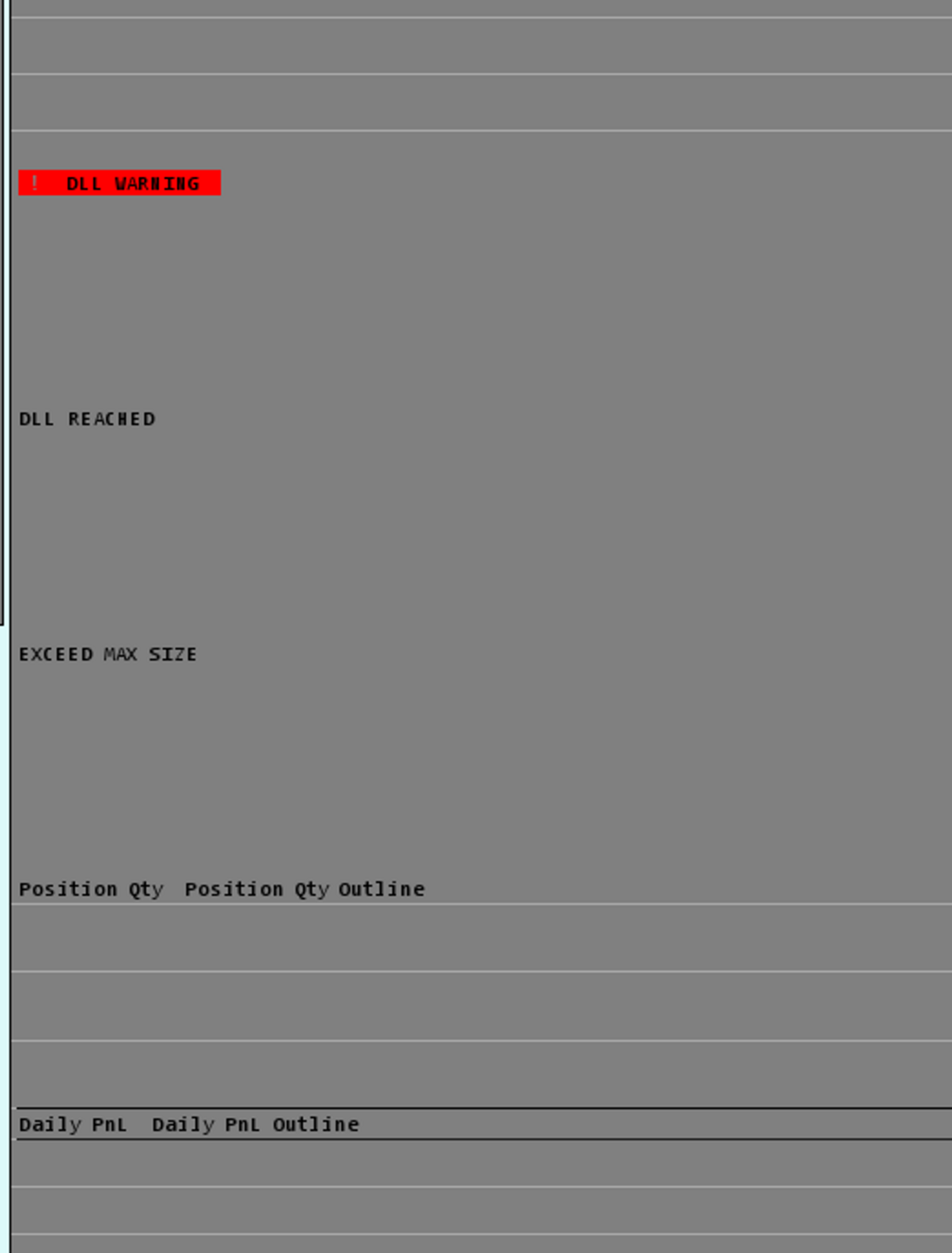 Use case: Share your trading screen or alert log with a riskmanager/trading partner/stream. Stream the window through an app such as Discord screen share or accountability partner. Or save screenshots for trade journaling. Keep an eye on various risk metrics yourself. Use this chartbook to monitor various performance metrics real time, with clear visuals.